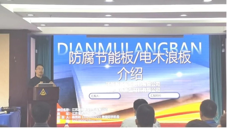 苏州瀚燕新型材料有限公司销售总监韩秀林作题为《屋面及墙面维护系统新型防腐板材介绍》报告